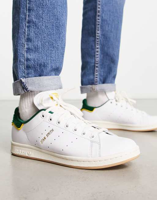 adidas Originals Stan Smith trainers in white and green with gum sole