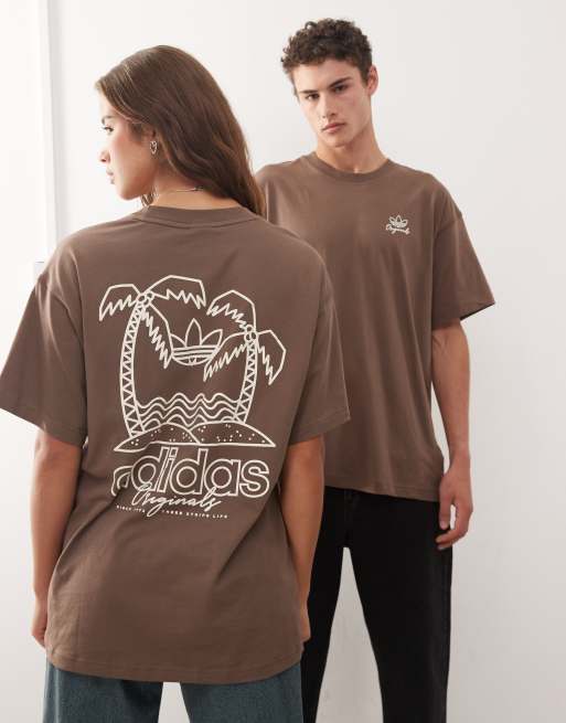 adidas Originals t-shirt with palm tree back graphic in brown