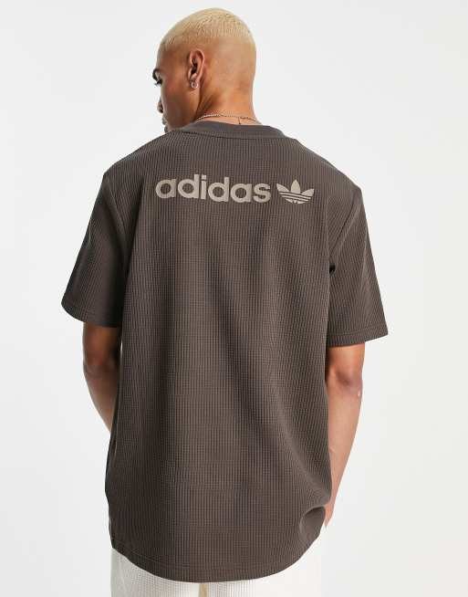 adidas Originals 'Tonal Textures' waffle t-shirt in brown with back logo