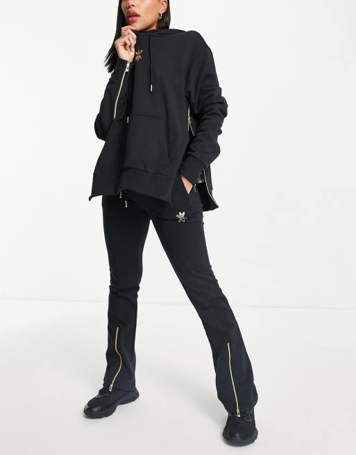 adidas Originals track pant in black with gold logo and split hem