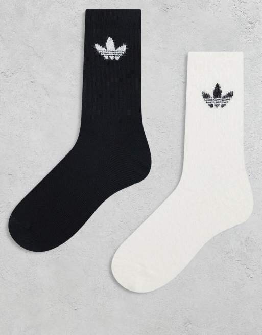 adidas Originals Trefoil 2 pack fluffy crew socks in black and white