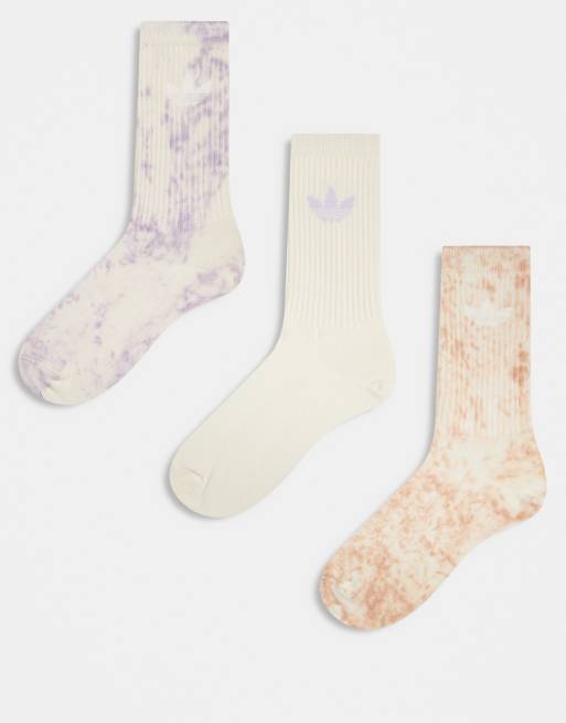 adidas Originals Trefoil 3 pack tie dye crew socks in peach