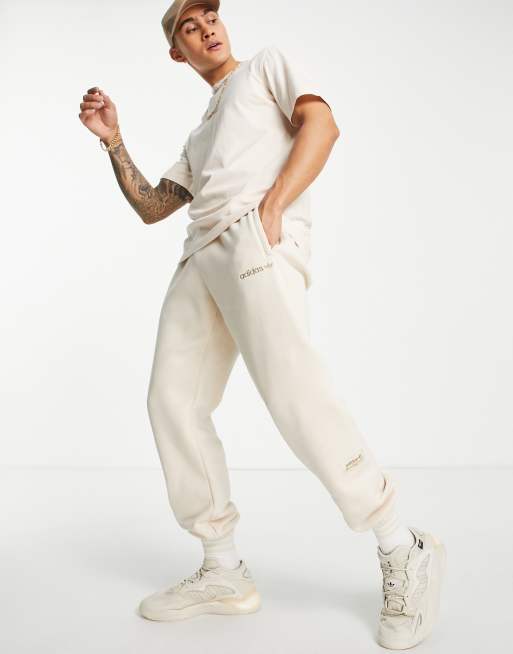 adidas Originals 'Trefoil Linear' premium joggers in beige with leg patch