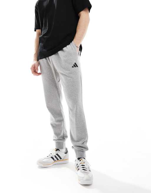 adidas Essentials feel cozy french terry pants in medium grey heather / black