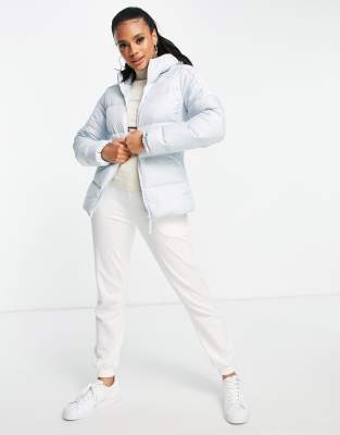 adidas Outdoor down hooded puffer jacket with three stripes in blue