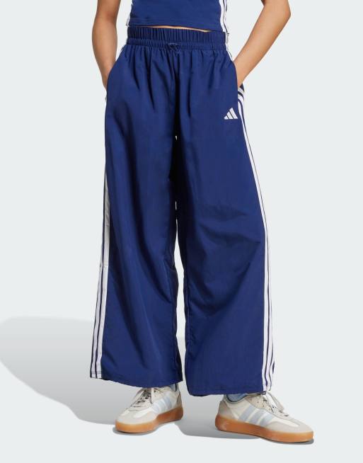 adidas performance Essentials 3-stripes lifestyle woven parachute pants in dark blue / white