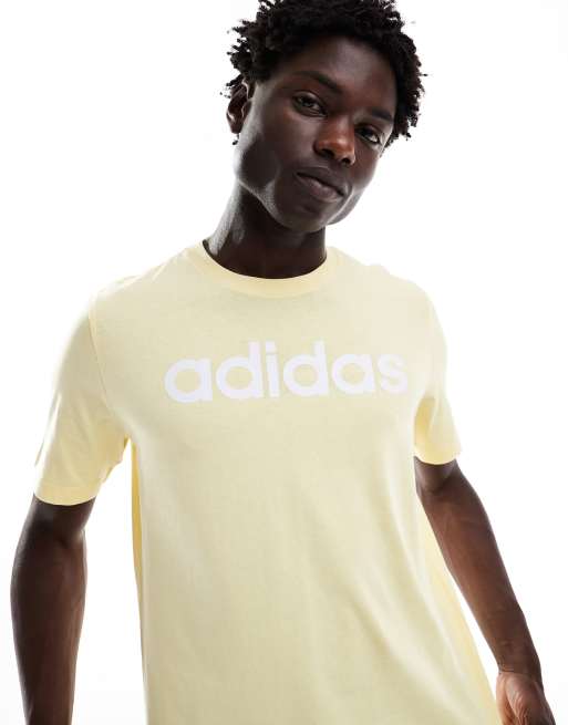 adidas Performance essentials single jersey linear embroidered logo t-shirt in yellow
