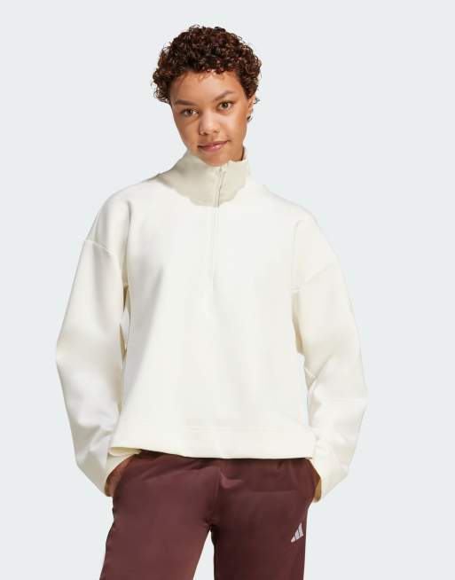 adidas performance Soft lux quarter-zip in off white