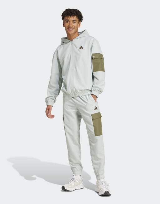 adidas performance Sportswear woven cargo track suit in wonder silver