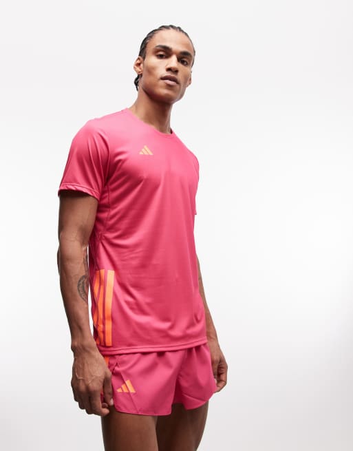 adidas Running Adizero t-shirt in pink and orange