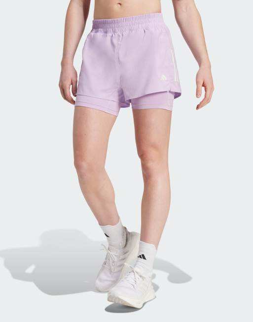 adidas Running Own the run climacool 2-in-1 shorts in powder plum