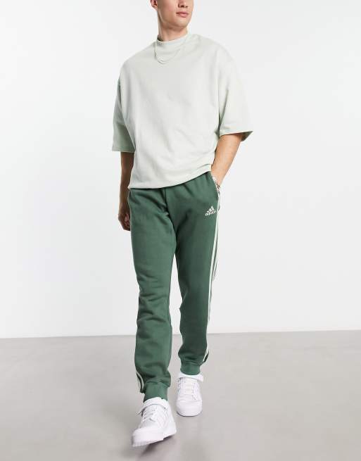 adidas Sportswear Essential 3 stripe jogger in green
