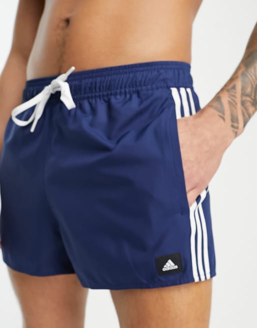 adidas Swim 3 stripe shorts in navy