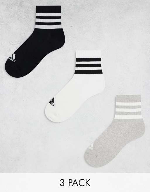 adidas Training 3 pack 3 stripe crew socks in white,black and grey