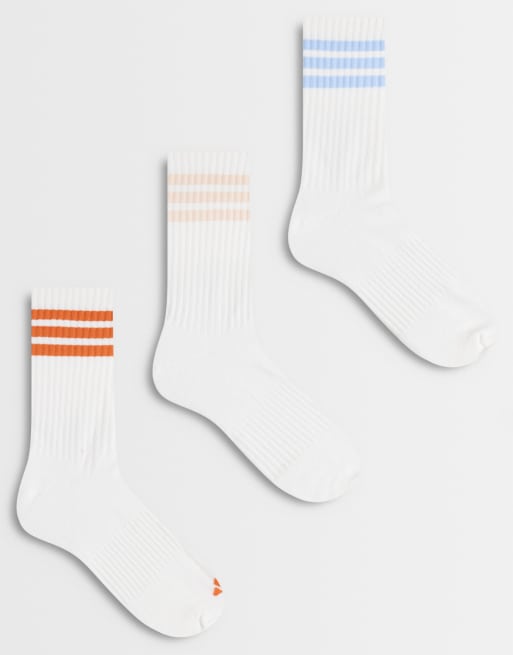 adidas Training 3 stripe multi colour socks in white 6 pack