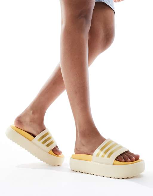 adidas Training Adilette platform sliders in sand and gold