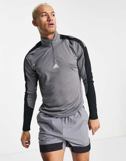 adidas Training Aeroready panelled long sleeve half zip sweat in grey