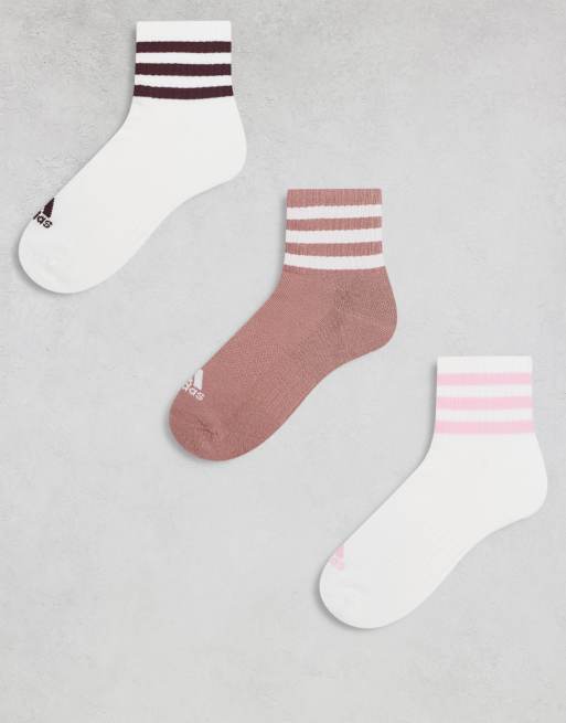adidas Training Essential 3 stripe mid socks in white and clay 3 pack