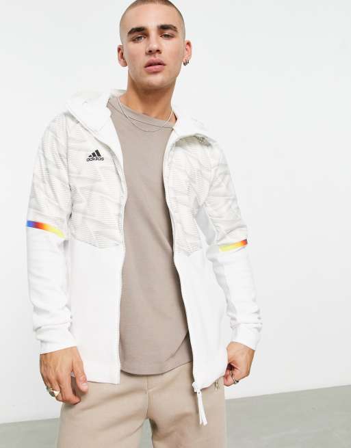 adidas Training Game Day printed full zip hoodie in white