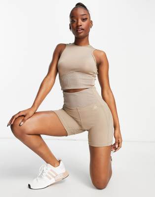 adidas Training Hyperglam ribbed high waisted shorts in brown