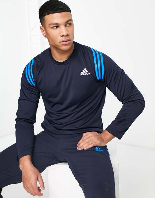 adidas Training Icons shoulder stripes long sleeve t-shirt in navy