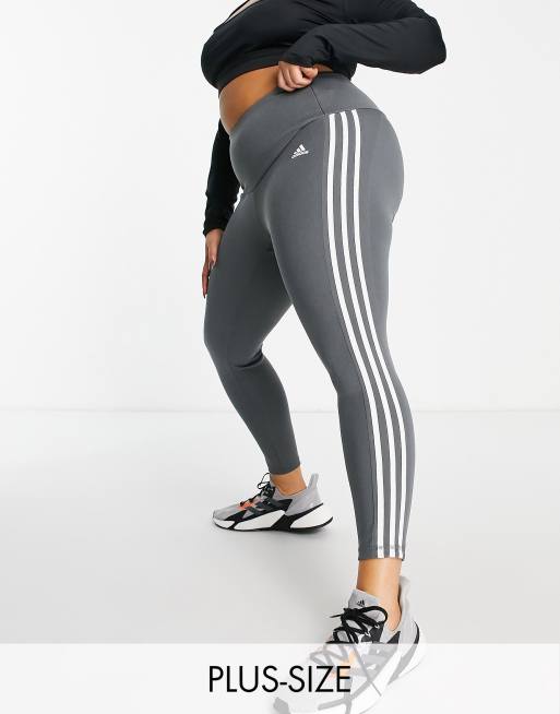 adidas Training Plus Essential 3 Stripe 7/8 leggings in grey