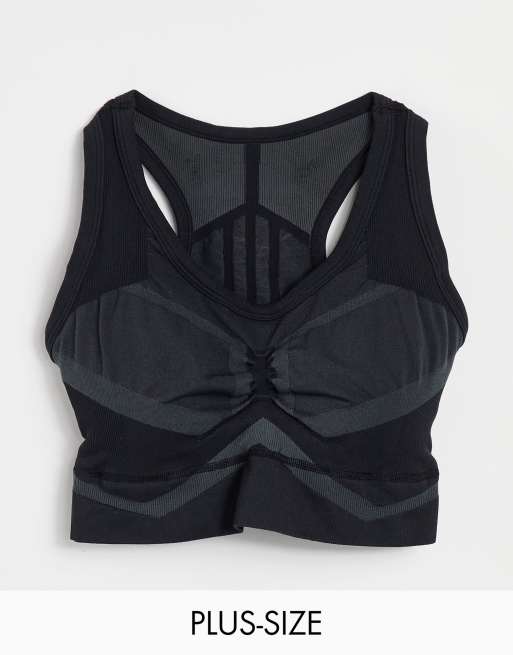 adidas Training Plus Sculpt sports light support sports bra with seam detail in black