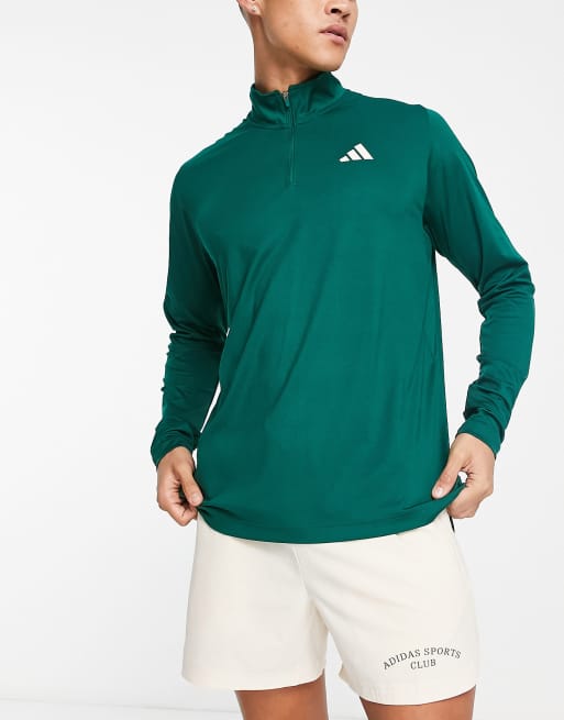 adidas Training Sports Club back print graphic 1/4 zip top in green