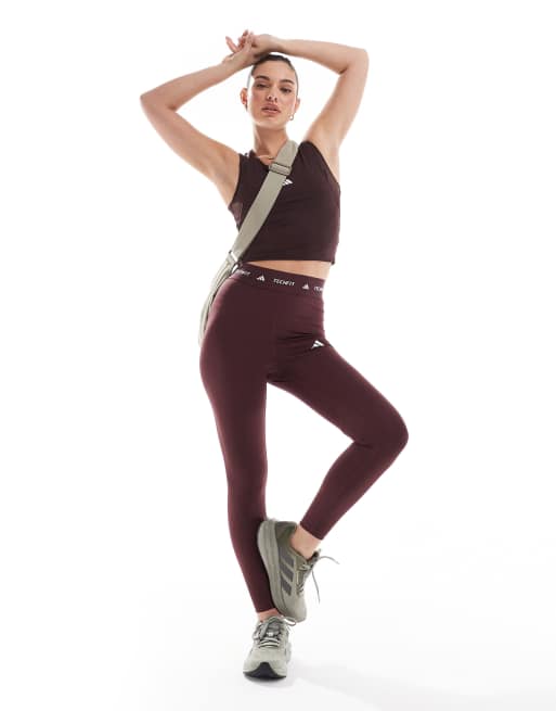 adidas Training tech fit 7/8 sculpt leggings in burgundy