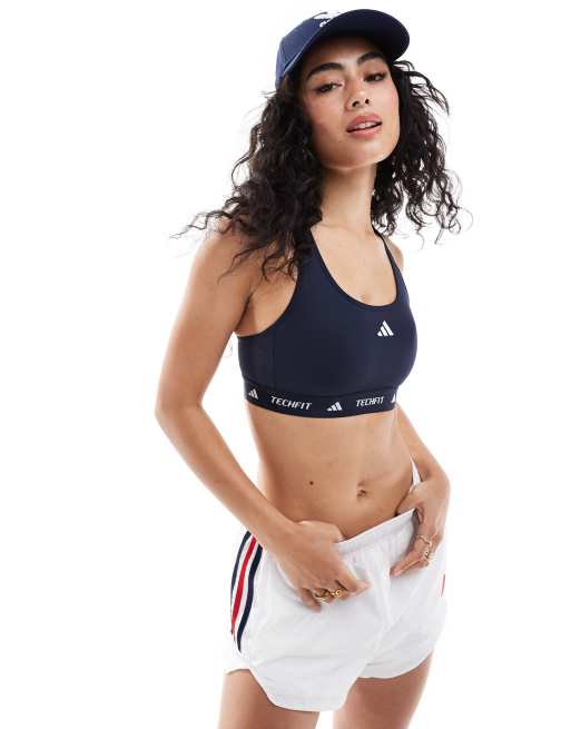 adidas Training techfit medium-support sports bra in blue