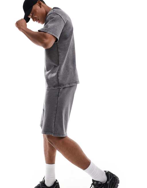 ADPT oversized sweat short co-ord in washed grey
