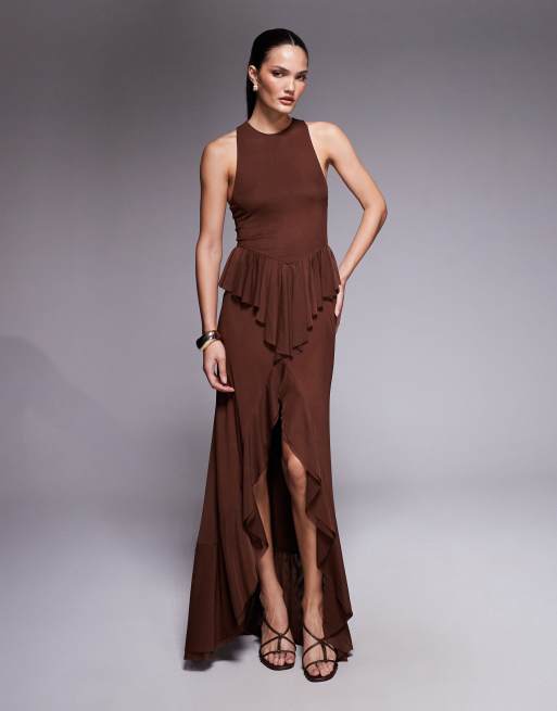 AFRM Bovina mesh drop hem ruffle maxi dress in cappuccino
