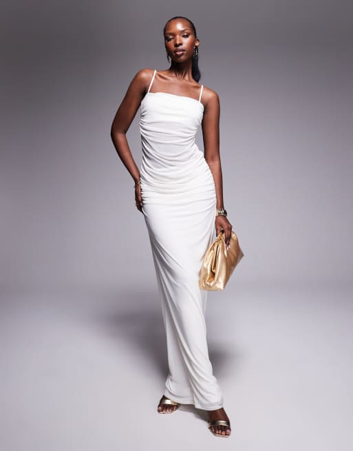 AFRM sheer waist power mesh ruched midaxi dress in white