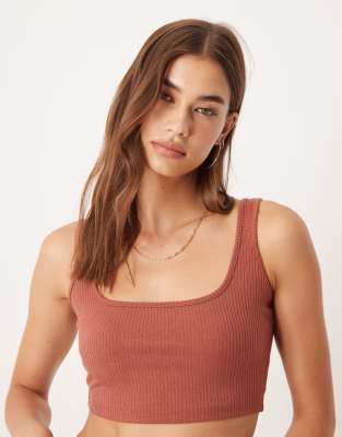 Agon Scoop neck crop top in rose rust rib