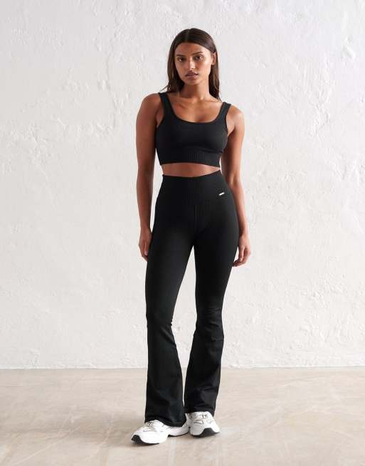 Aim'n Black ribbed seamless flare petite tights in black