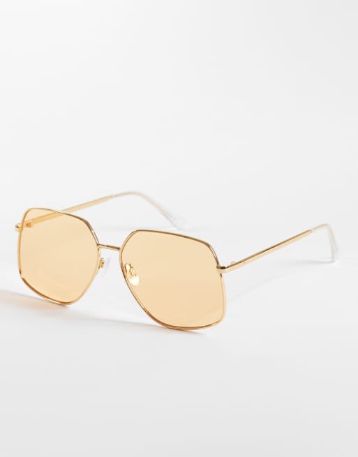 AIRE altair angular 70s aviator sunglasses in gold and amber tint