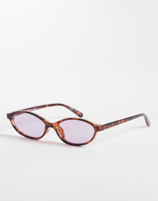 AIRE earthshine slim oval sunglasses in amber tort with lilac tinted lens