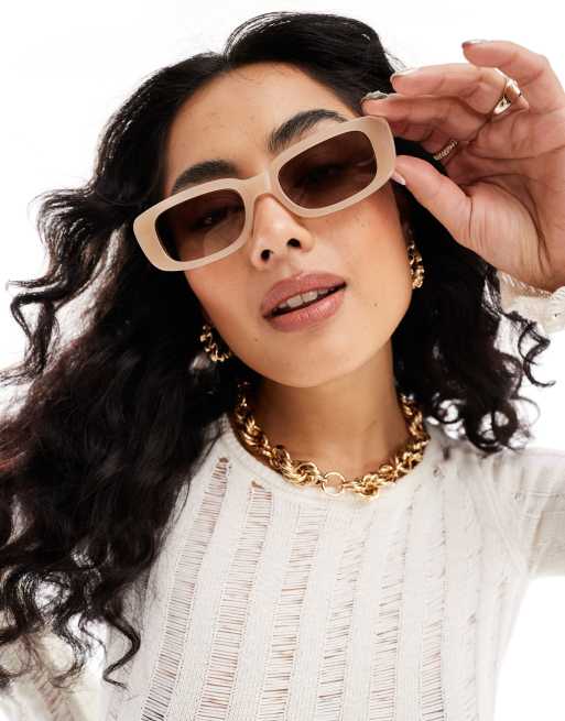 AIRE X ASOS ceres rectangle sunglasses in beige with tort arms