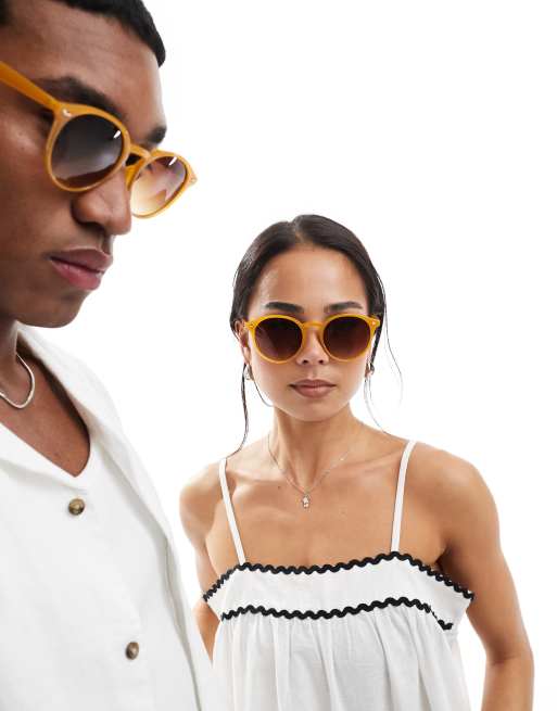 AJ Morgan point dexter round sunglasses in amber with brown lens