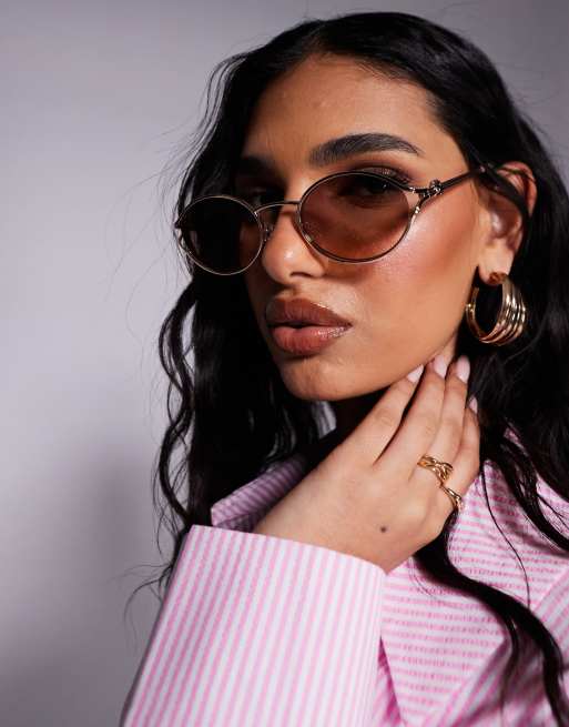 ALDO clubsunnies slim metal oval sunglasses in gold and pink
