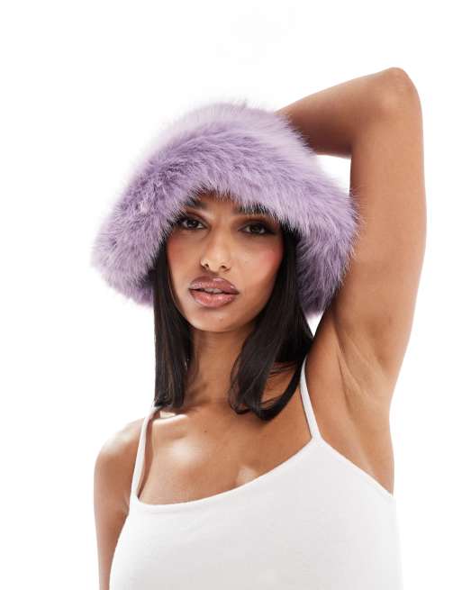 ALDO faux fur oversized bucket hat in lilac