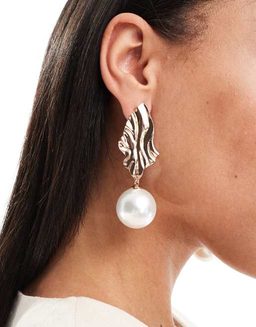 ALDO fionna wave pearl drop statement earrings in gold