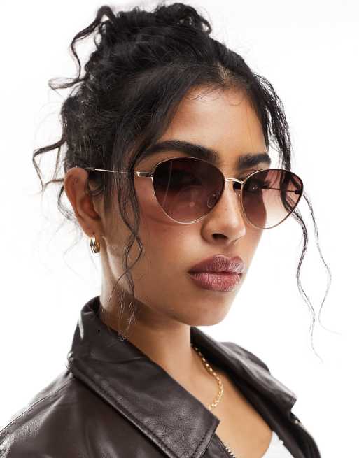 ALDO metal cat eye sunglasses in gold with brown lens