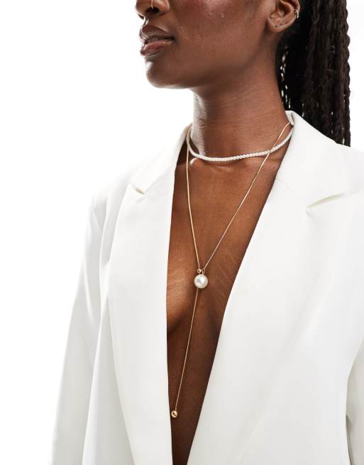 ALDO pearl lariat necklace in gold