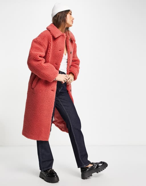 Aligne teddy cocoon coat in pink