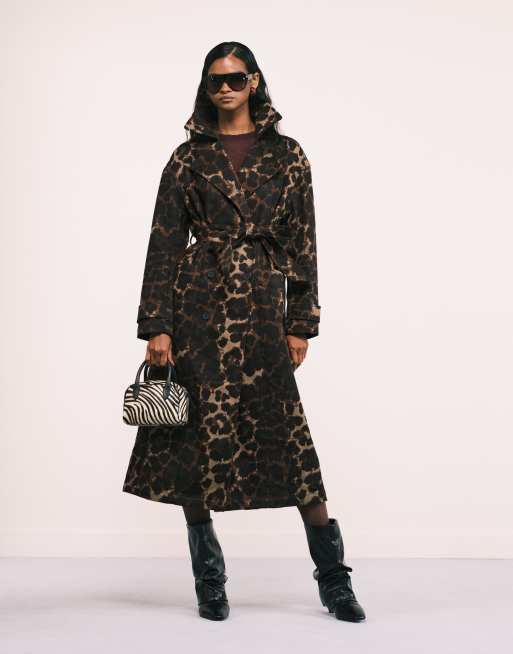 Allsaints Abel leopard trench coat in brown / black