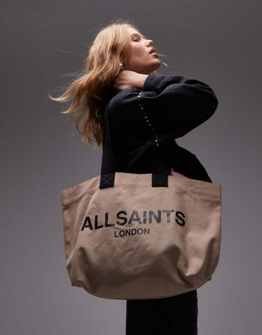 AllSaints Ali canvas tote in mink brown