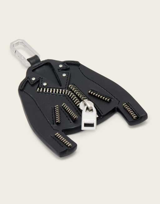 AllSaints balfern leather jacket keyring in black and silver