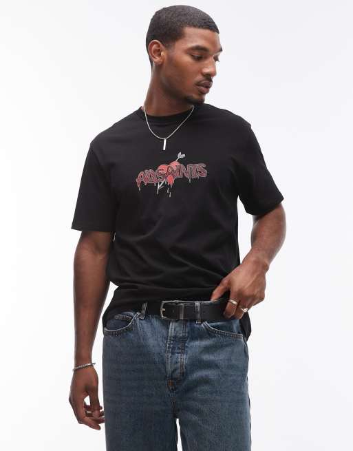 AllSaints Bereft logo heart print oversized t-shirt in black