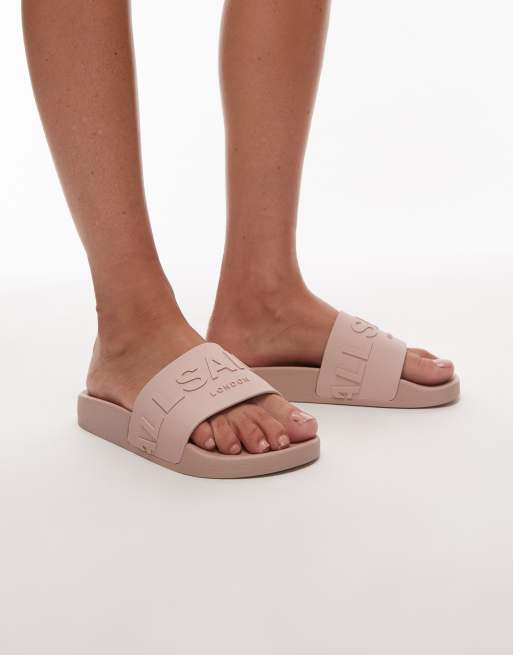 AllSaints Biggy rubber sliders in rose pink